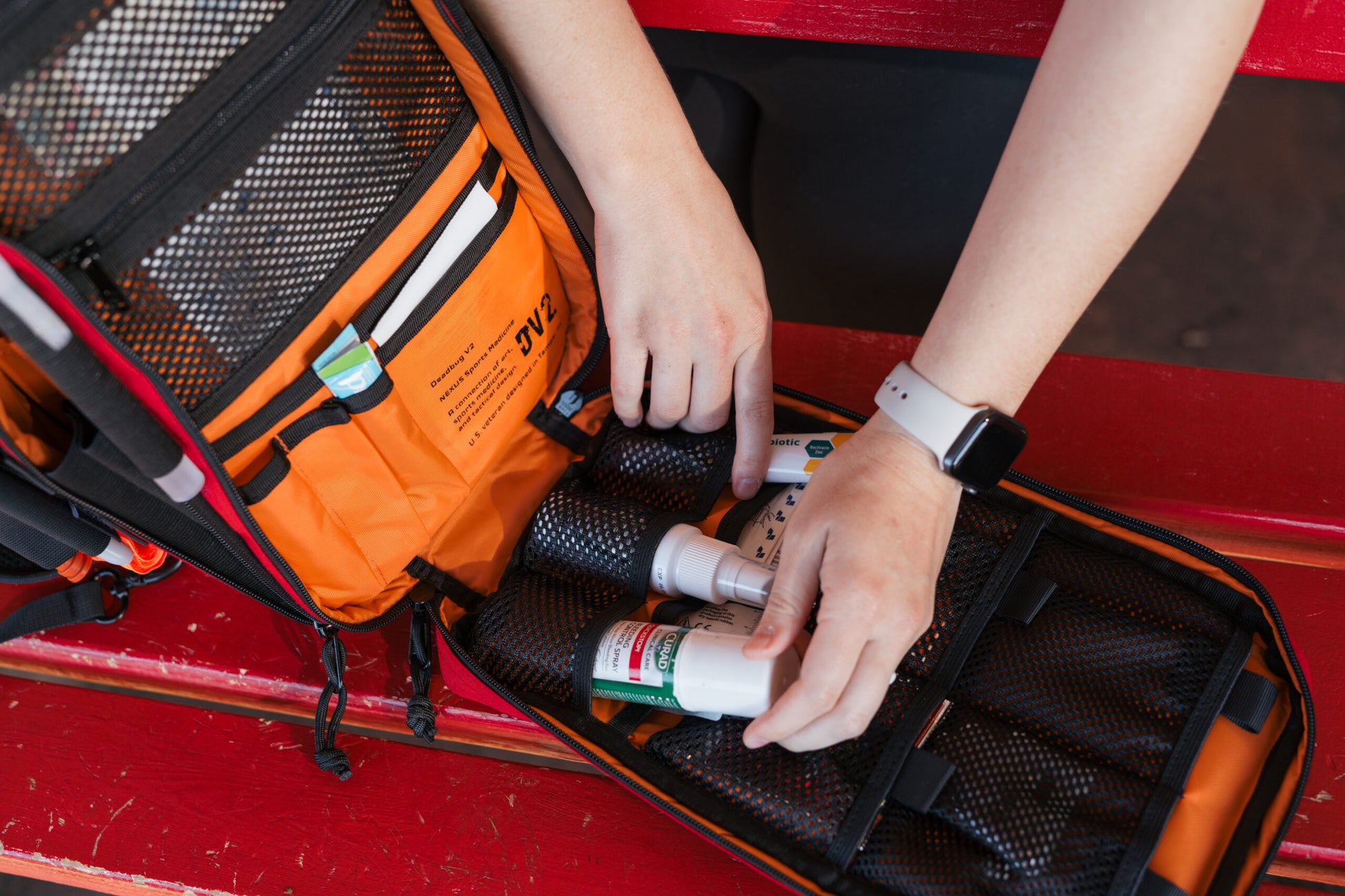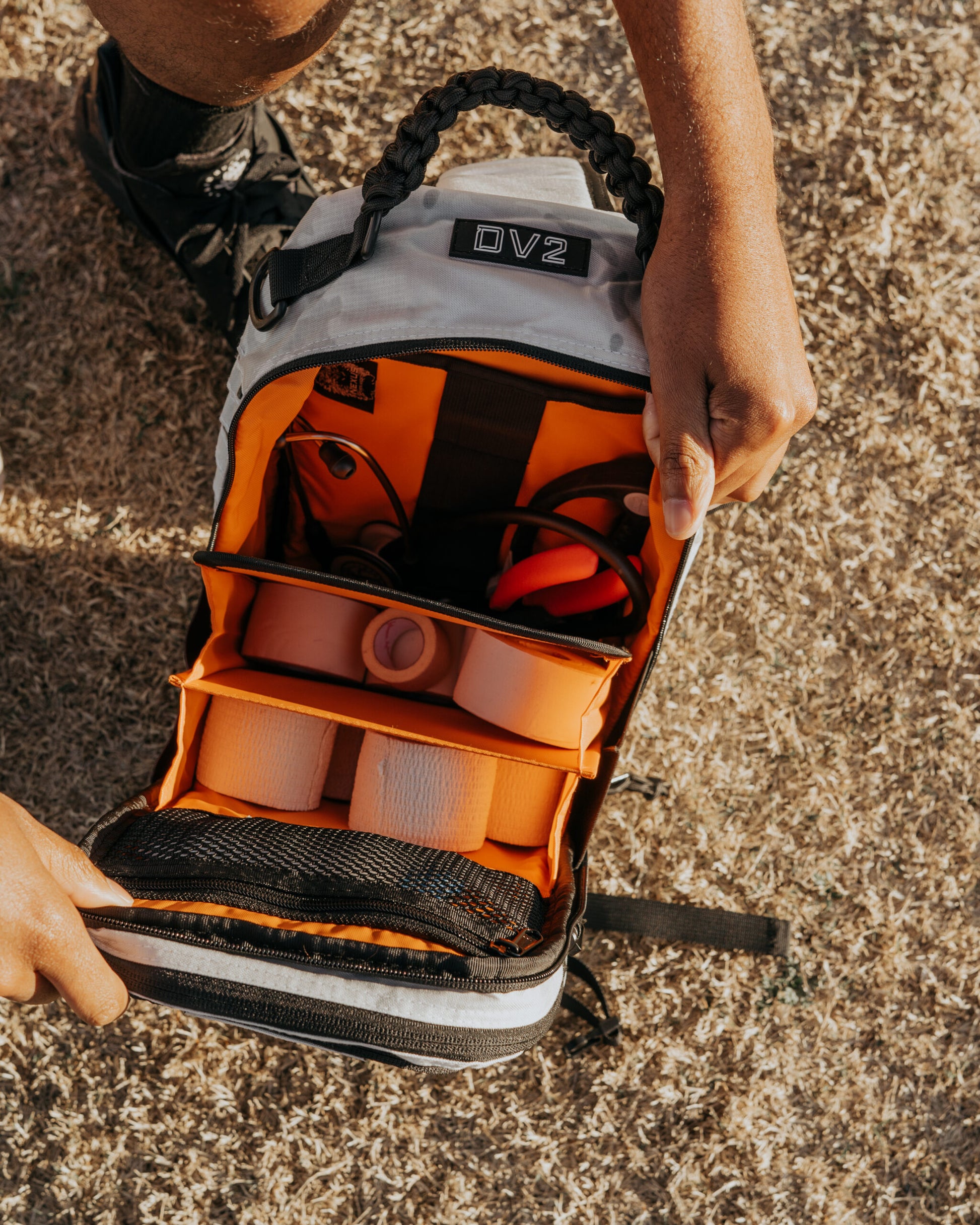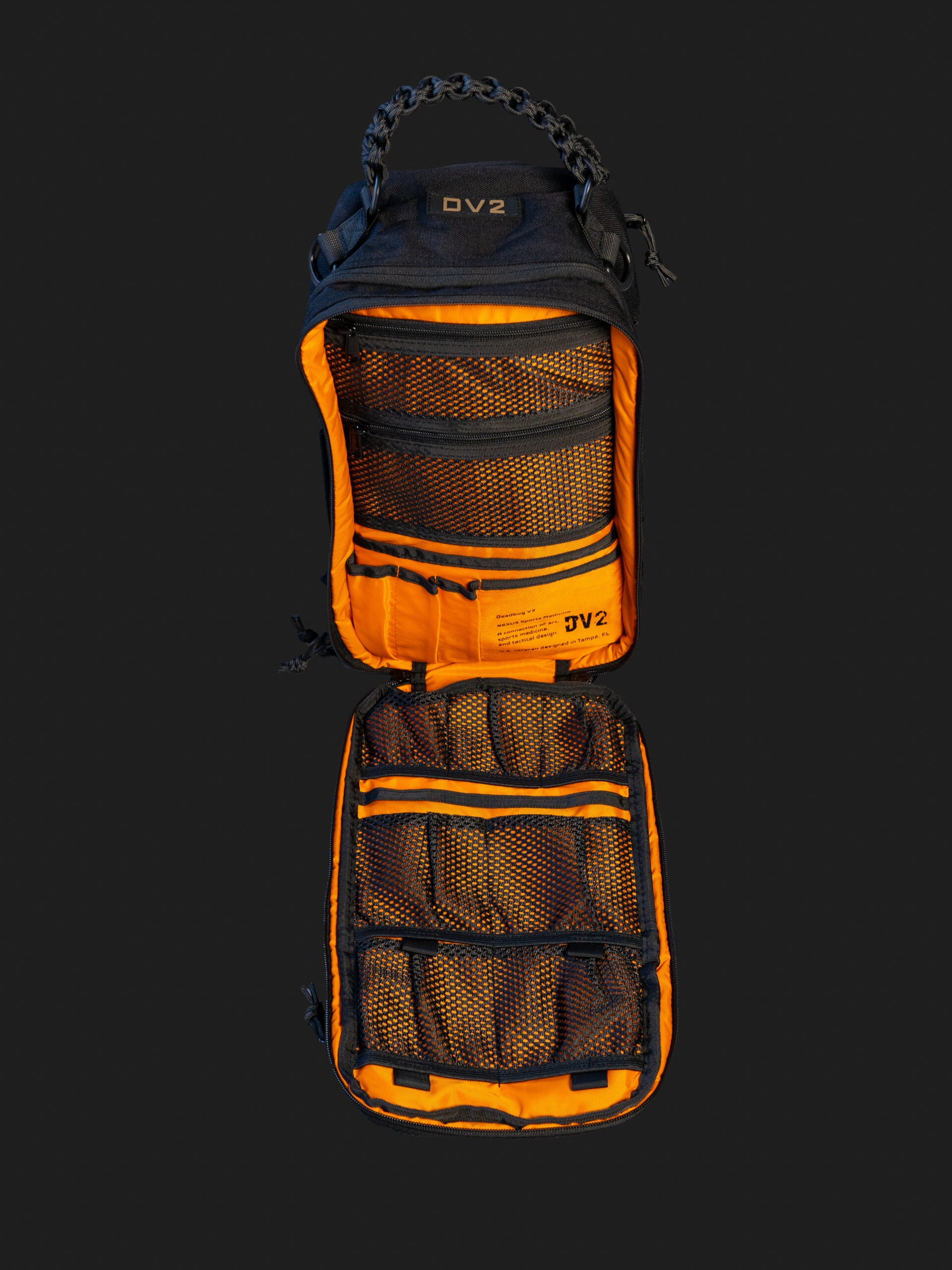 The Dv2 works best as a mobile kit and is NOT best suited for quick access when slung in front of you. If you desire a kit with a horizontal opening for quick sling forward access, Nemesis will suit you better.