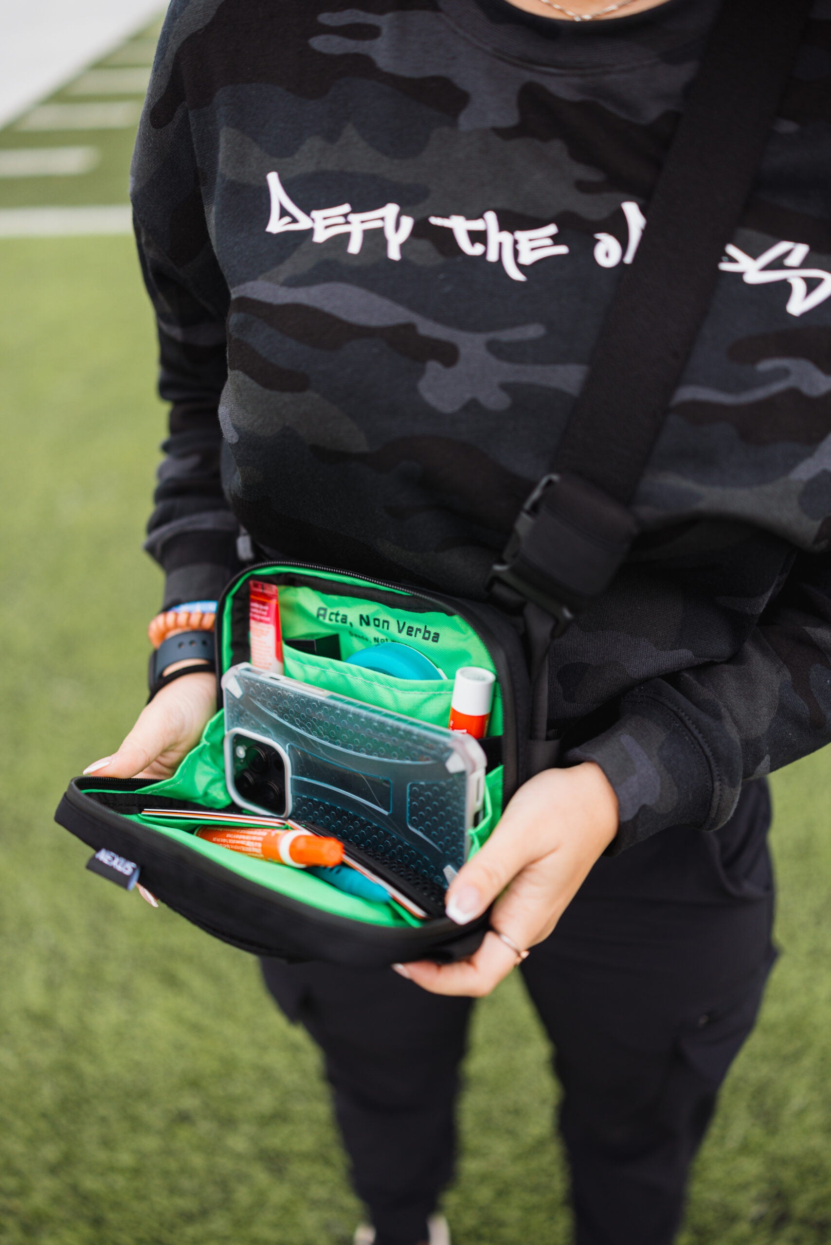 **On the Alpine color, the lime green interior lining can slightly be seen through certain parts of the pouch**