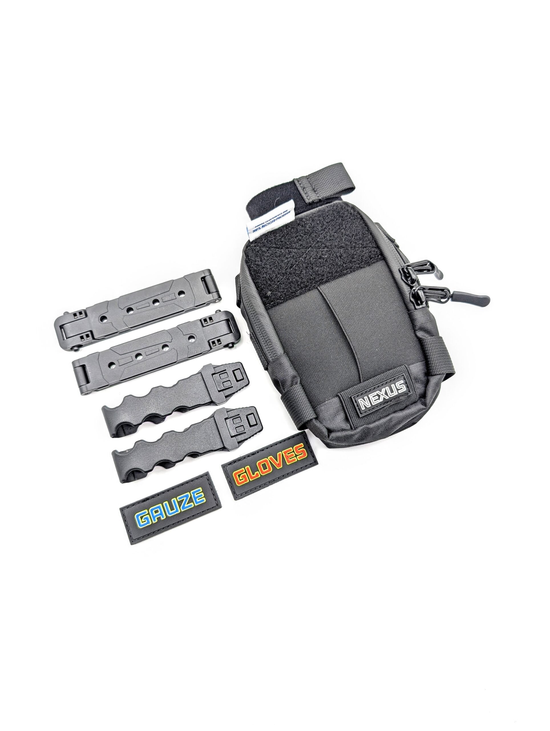 Scissor compatibility is the same as the Firefly too. Both sidewalls of the GDP are lined with MOLLE webbing for compatibility with our MOLLE tape holder, Mini Dispenser Pouch, tacpen, penlight, and other items. Like the Firefly, the Glove Dispenser Pouch can be worn solo. You can run a belt through the MOLLE clips/MOLLE LockClips or attach it with the Modular Strap on the back MOLLE webbing.