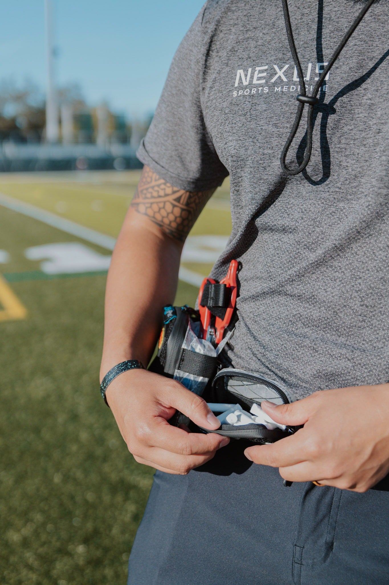 The backside features a lone mesh pocket that can fit OTCs, triple antibiotic packets, stik-its, chapstick, and other very small items of that nature. So technically, this pouch can dispense anything in small packet form as long as it is placed behind the elastic sleeves